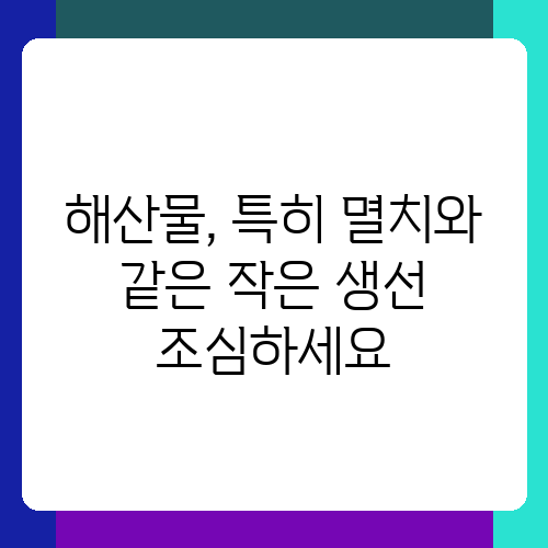 해산물, 특히 멸치와 같은 작은 생선 조심하세요