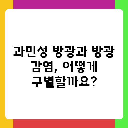 과민성 방광과 방광 감염은 모두 소변이 자주 마려운 증상을 일으키지만, 그 원인과 증상에 차이가 있습니다. 과민성 방광은 방광의 과민 반응으로 인해 발생하는 반면, 방광 감염은 세균 감염으로 인해 발생합니다. 방광 감염의 경우 소변을 볼 때 통증이나 화끈거림, 탁한 소변, 악취 등의 추가 증상이 나타나는 경우가 많습니다. 두 질환은 증상만으로는 구별하기 어렵기 때문에 의사의 진찰과 검사가 필요합니다. 소변 검사를 통해 감염 여부를 확인하고, 필요에 따라 방광 경검사 등 추가 검사를 진행할 수 있습니다. 정확한 진단을 통해 적절한 치료를 받는 것이 중요합니다. 저는 초기에는 증상이 비슷해서 혼란스러웠지만, 의사의 설명을 듣고 차이점을 확실히 알게 되었습니다.