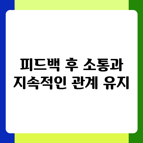 피드백을 전달한 후에는 상대방의 반응을 잘 살펴보고, 필요에 따라 추가적인 설명이나 소통을 해야 합니다. 피드백을 받은 사람이 이해하지 못하거나 불만을 가지고 있다면, 그 원인을 파악하고 해결하기 위해 노력해야 해요. 단순히 피드백을 전달하는 것으로 끝나는 것이 아니라, 지속적인 관계를 유지하고 상호 발전을 위한 노력을 함께 해야 한다는 점을 잊지 마세요. 피드백은 일방적인 정보 전달이 아니라, 서로 소통하고 발전하는 과정임을 기억하며, 앞으로도 좋은 관계를 꾸려나가도록 노력합시다.