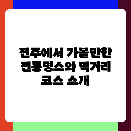 전주 여행을 계획 중이시라면, 아름다운 전통 건축물과 풍성한 먹거리의 향연을 놓칠 수 없겠죠? 이번 여행에서는 잊지 못할 추억을 만들 수 있도록 전주 여행의 백미, 한옥마을과 맛집들을 중심으로 알차게 코스를 짜 보았습니다. 여행 전에 꼼꼼히 확인하시고 전주에서 멋진 시간 보내시길 바랍니다!